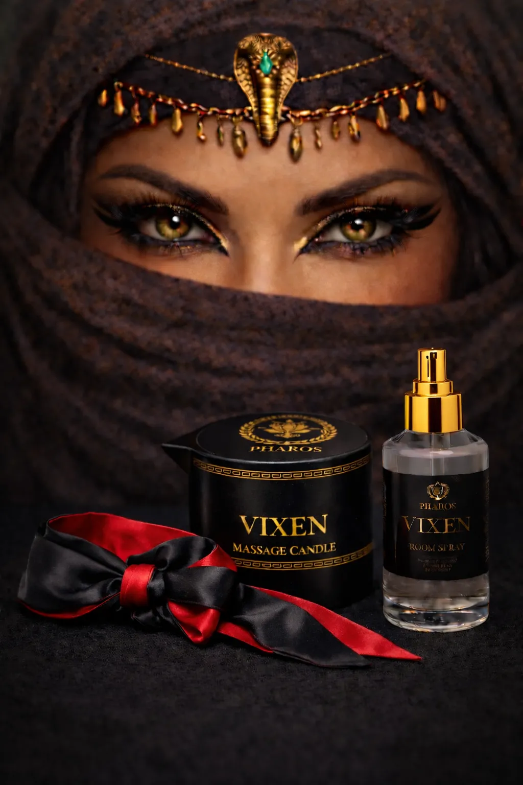 At its heart is a massage candle that melts into warm, silky body oil, designed to be poured slowly onto skin. Paired with a linen and room spray that fills your space with an intoxicating fragrance that lingers in the air. A reversible black and red silk blindfold completes the ritual, heightening every sensation by inviting you to let go of sight and give in to touch.